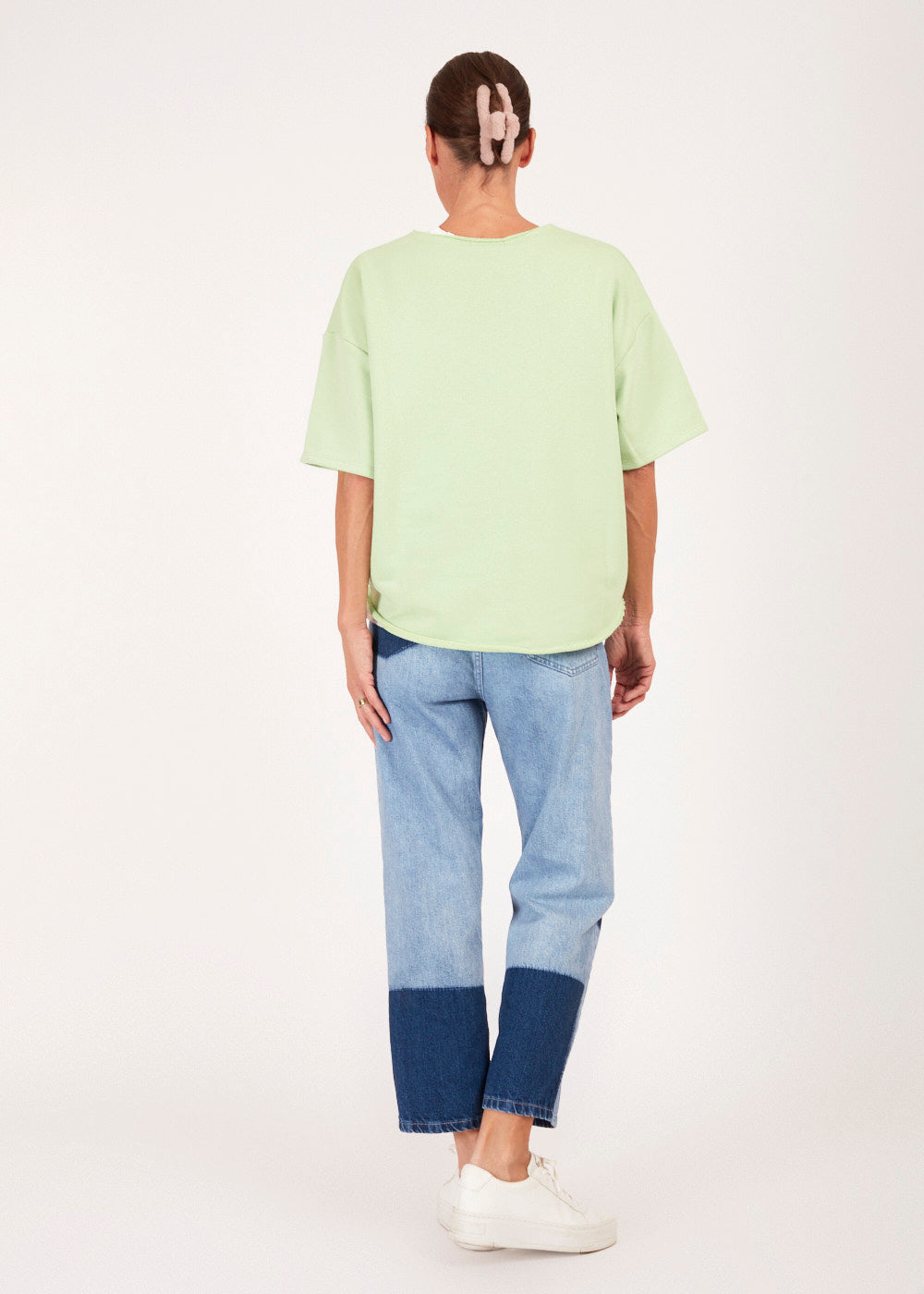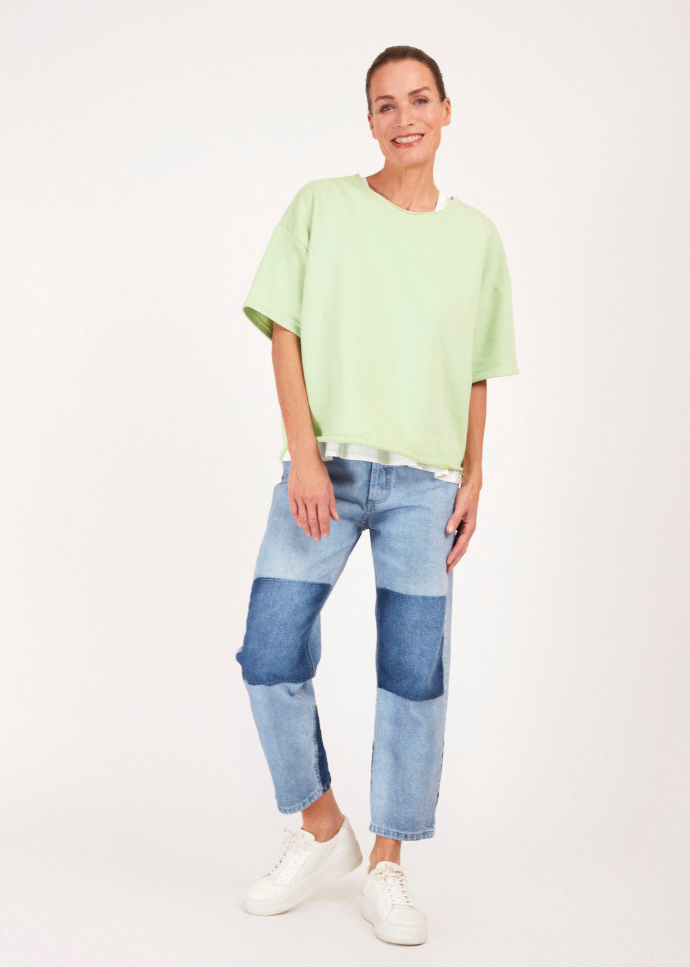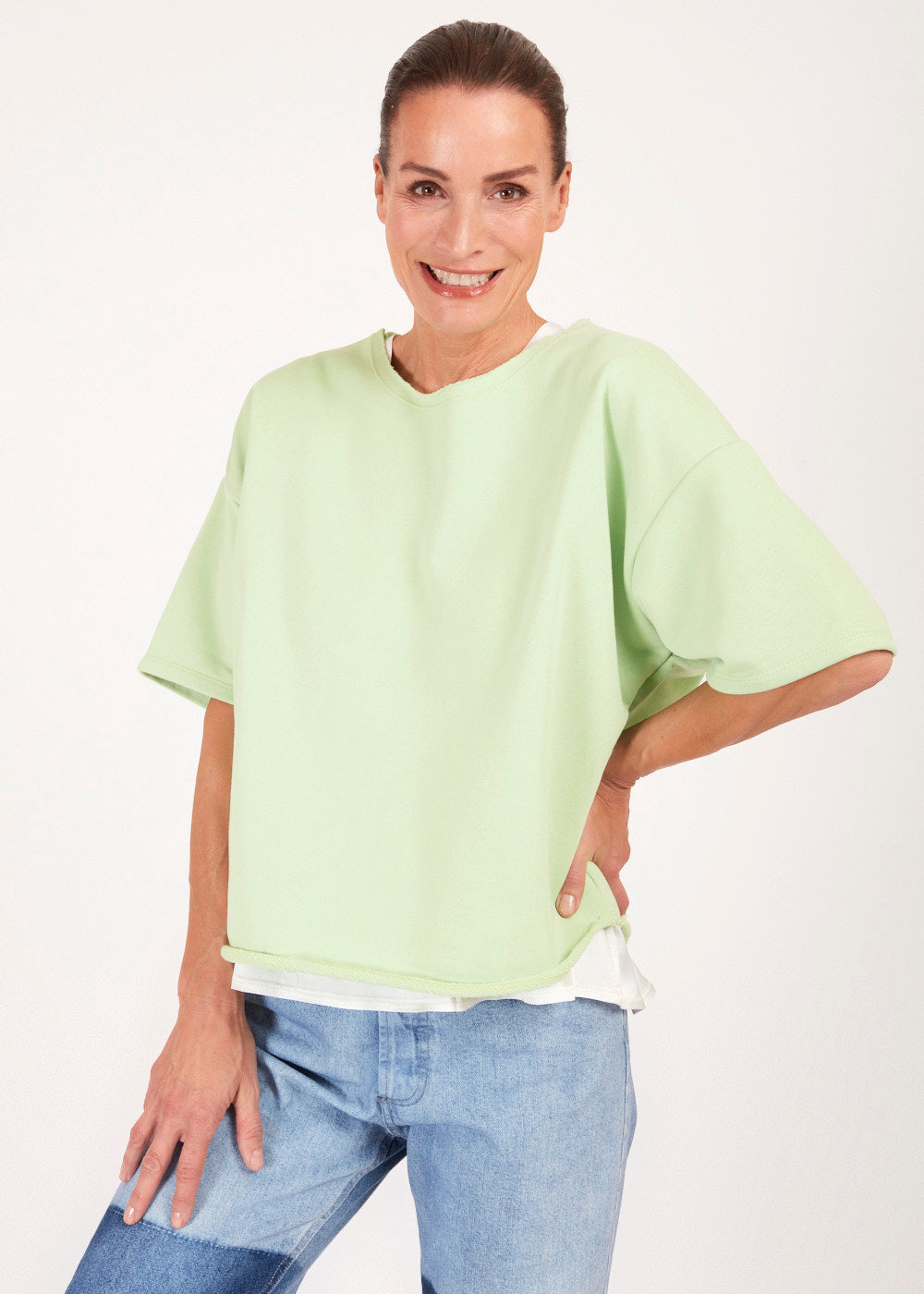 Der perfekte Sweatpullover für jeden Anlass - Egal ob du ihn lässig zu einer Jeans oder schicker kombinieren möchtest. Durch den halben Arm und die Farbe "kiwi" eignet sich der Pullover ideal für schöne Frühlingstage.